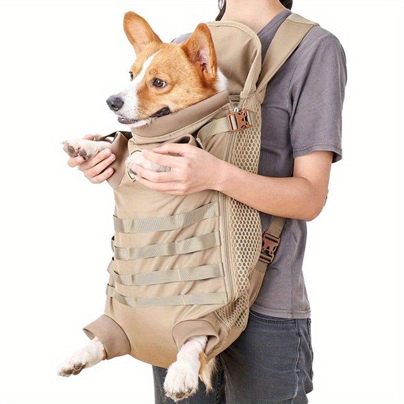 Dog Carrier Tactical Backpack for Small Medium Dogs, Soft HandsFree Legs Out Pet Front Cat Dog Carrier Backpack Travel Bag for Outdoor Traveling Hiking Camping (Large, Khaki)